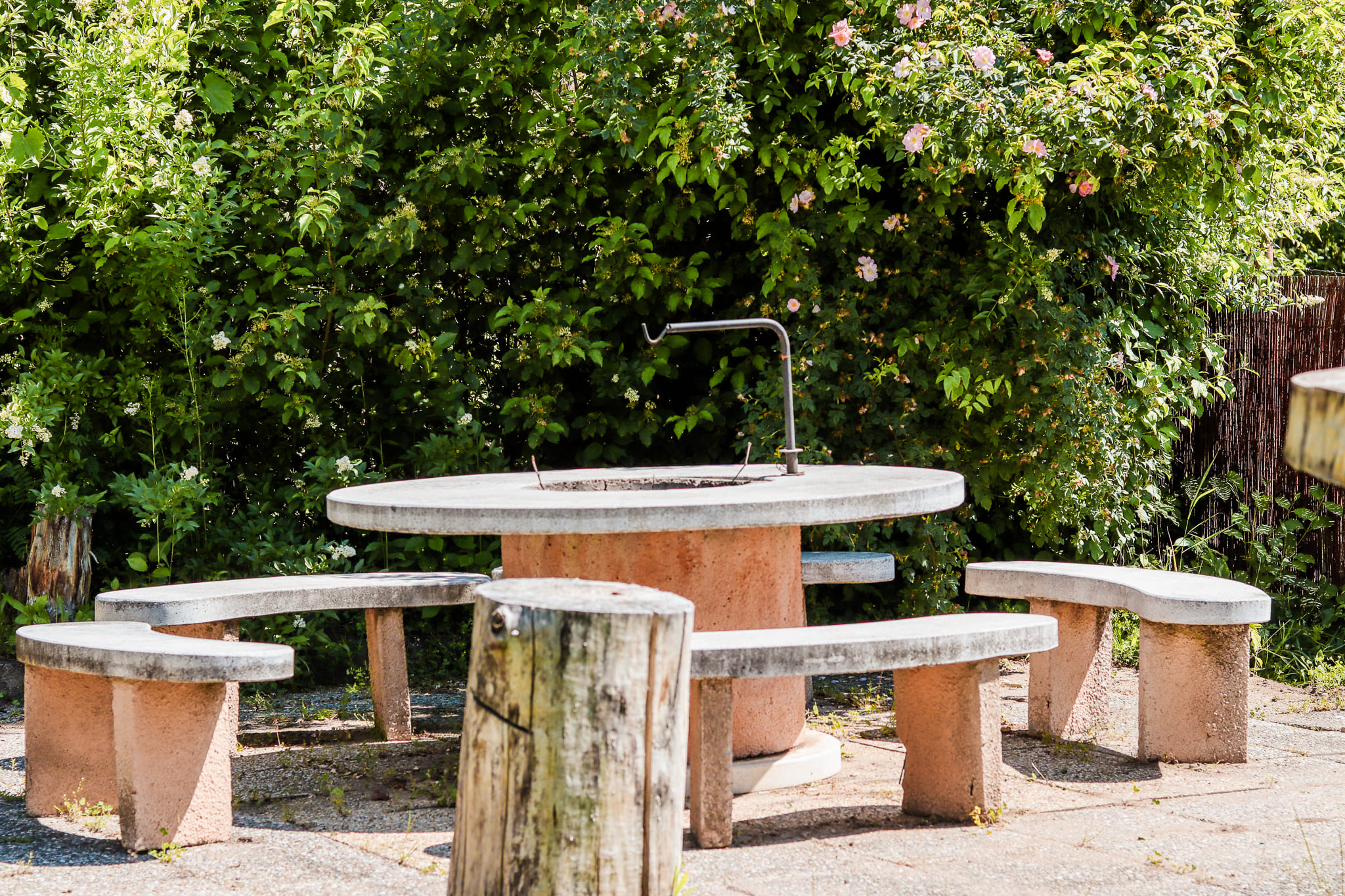 A kertben kialakított grillező hely tökéletes lehetőséget nyújt egy kellemes esti sütögetésre, legyen szó családi vacsoráról vagy baráti összejövetelről.