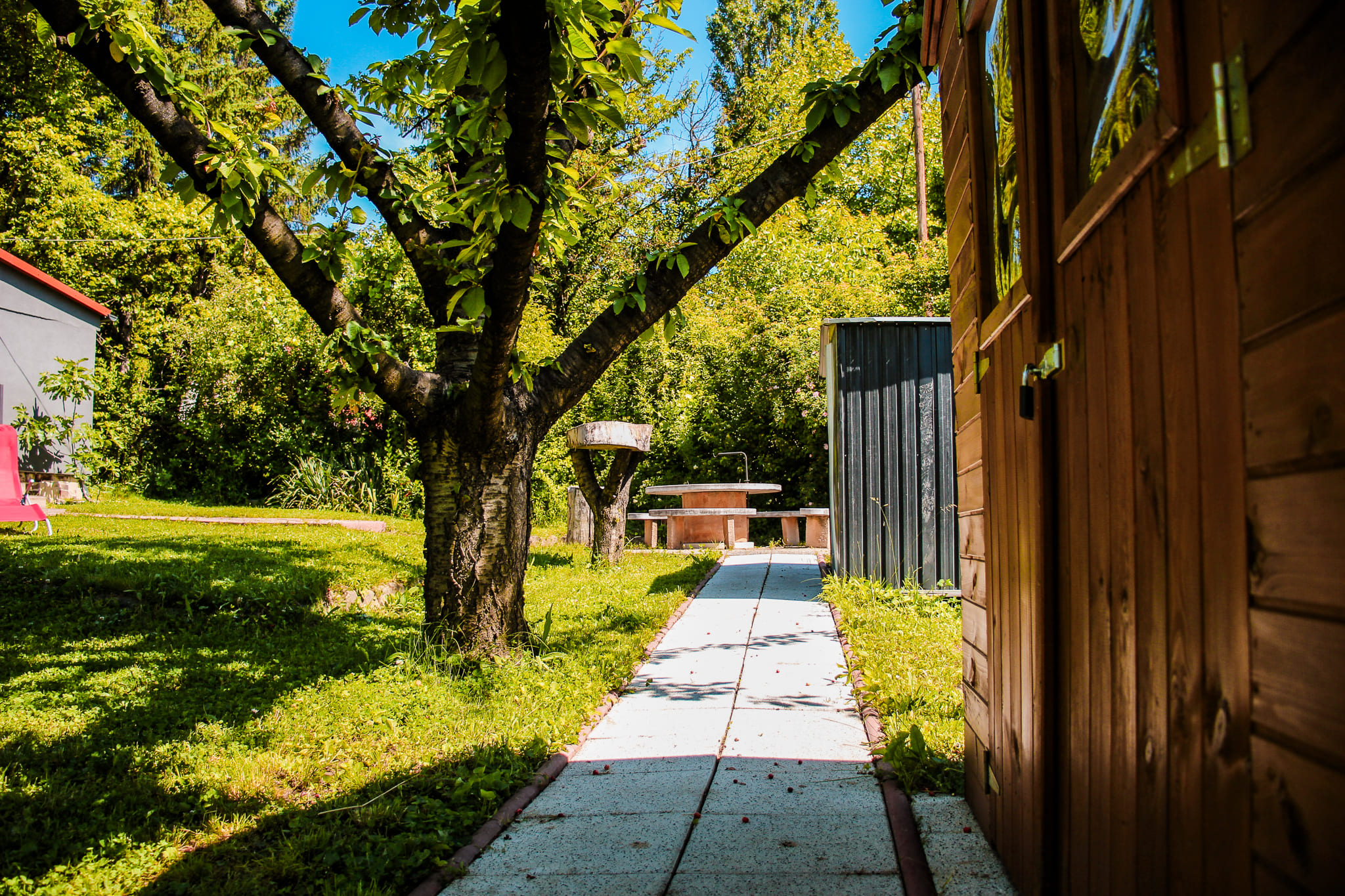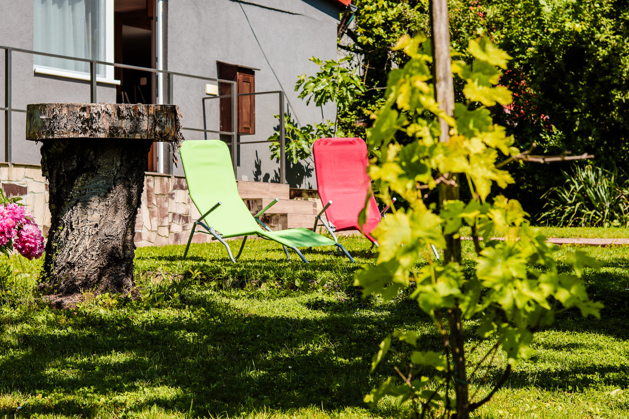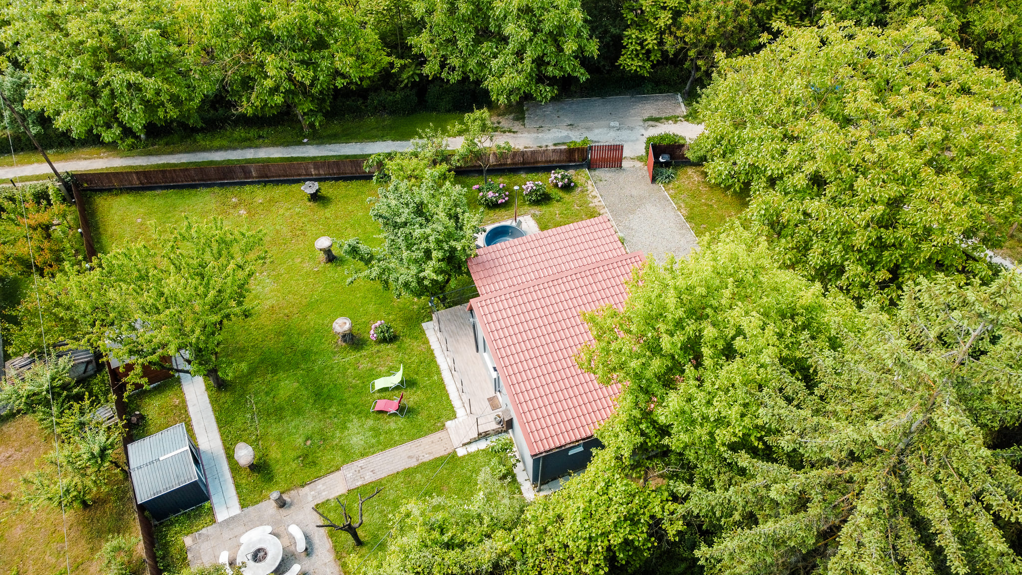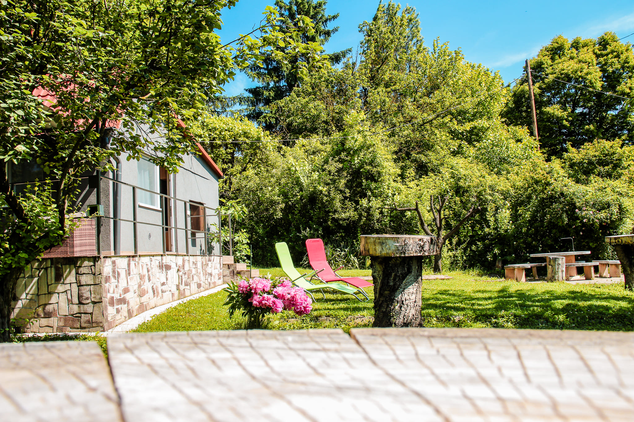 A vendégház közvetlen közelében árnyas fák és természetközeli környezet biztosítja a tökéletes kikapcsolódást. Madárcsicsergés, friss levegő és nyugalom vár.