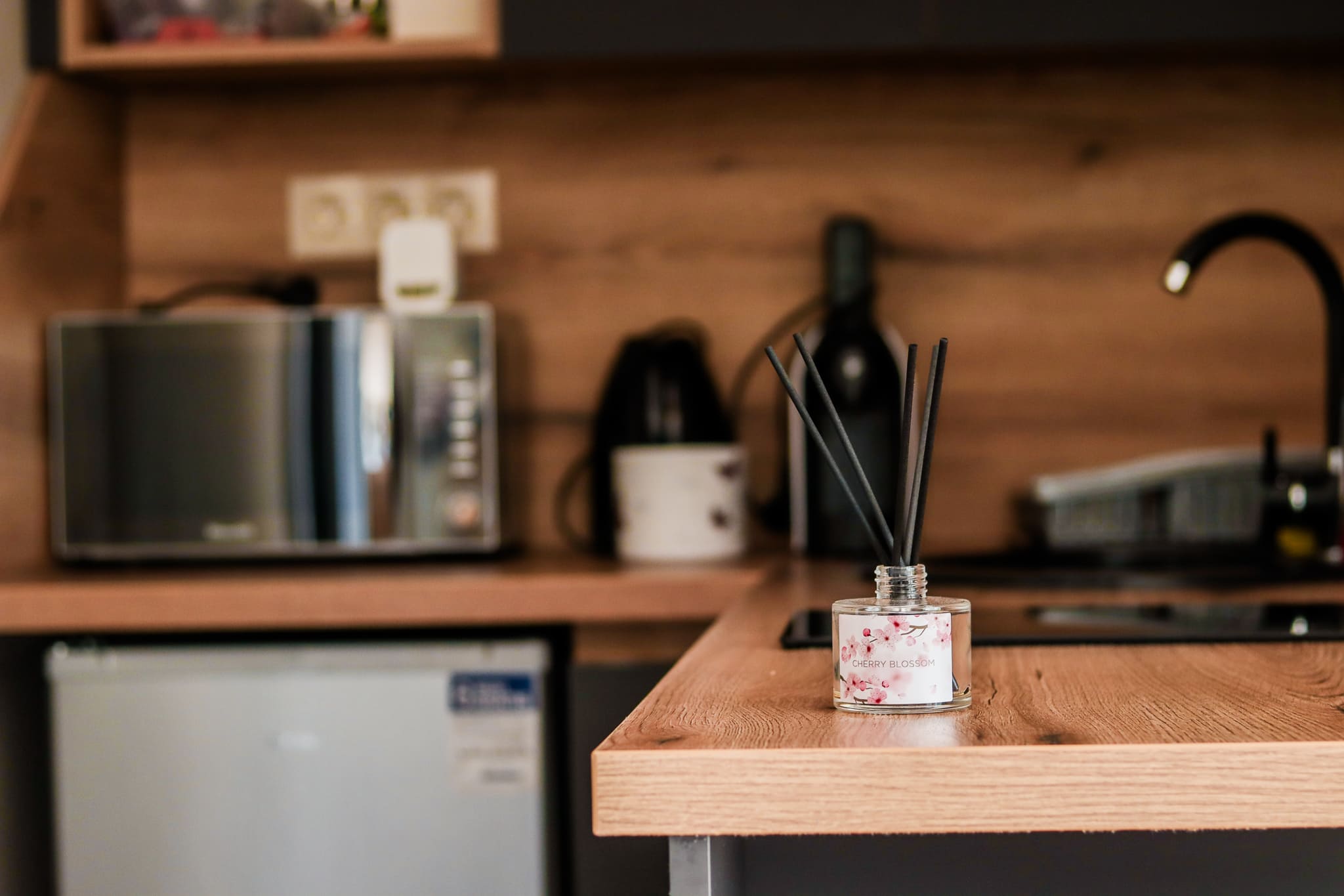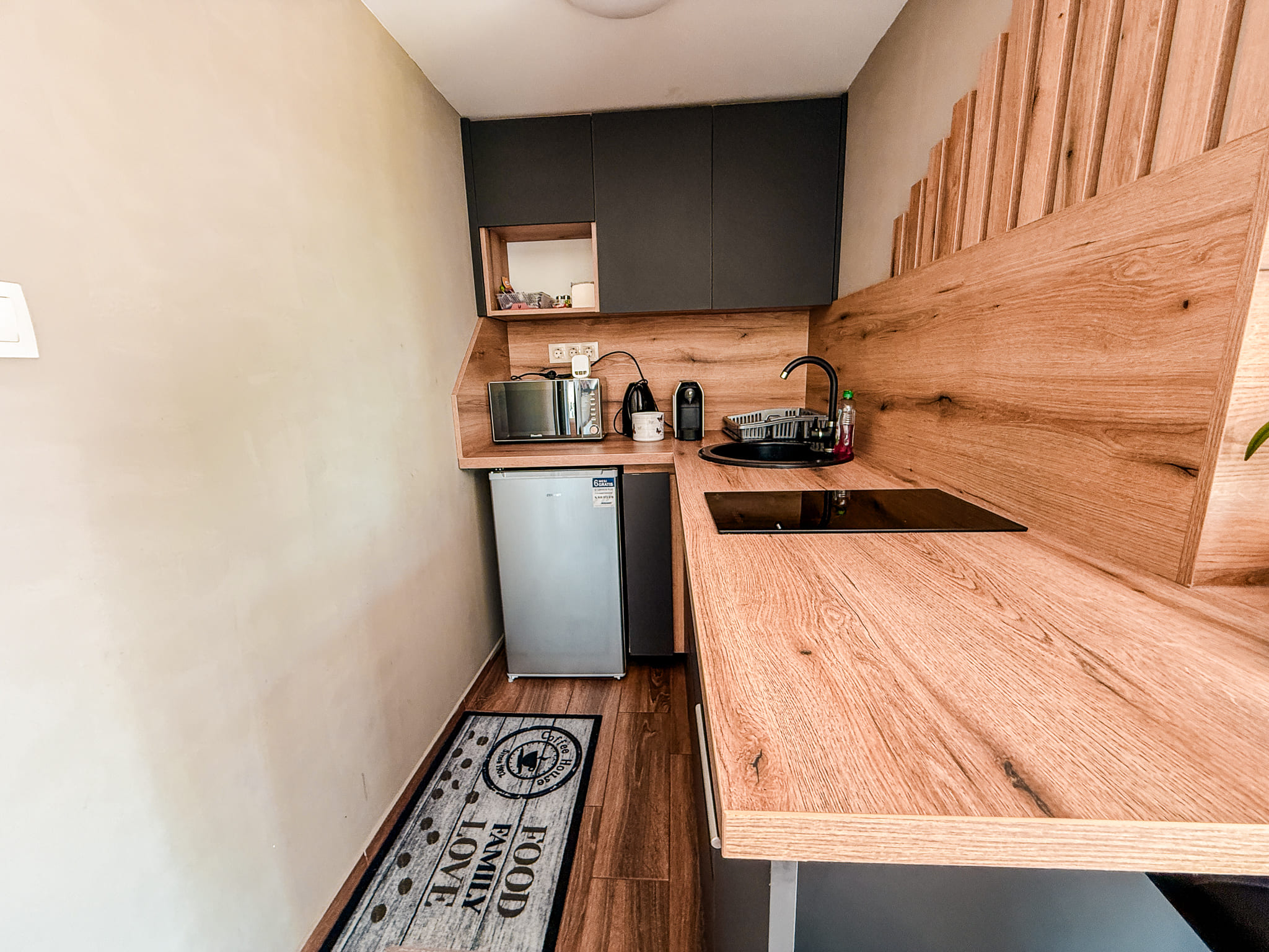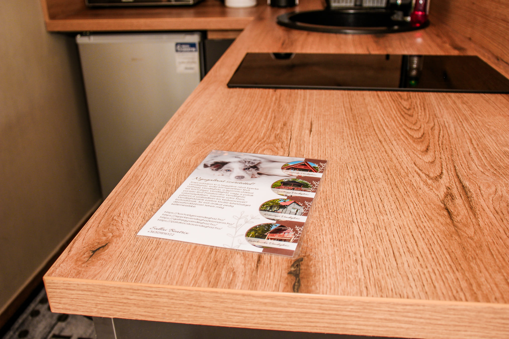 A vendégház modern, jól felszerelt konyhával rendelkezik, ahol minden adott egy finom étel elkészítéséhez és kávéfőző is a vendégek rendelkezésére áll.